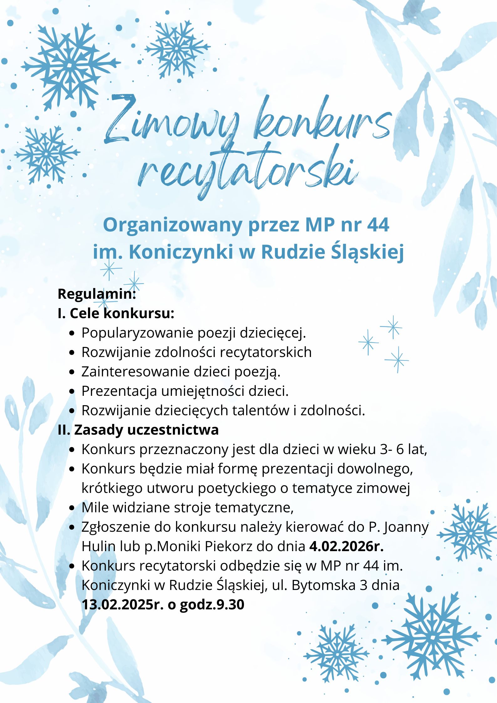 Serdecznie zapraszamy do udziału w Zimowym konkursie recytatorskim. Regulamin konkursu i zgody na udział dziecka […]