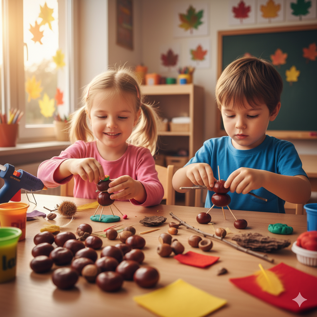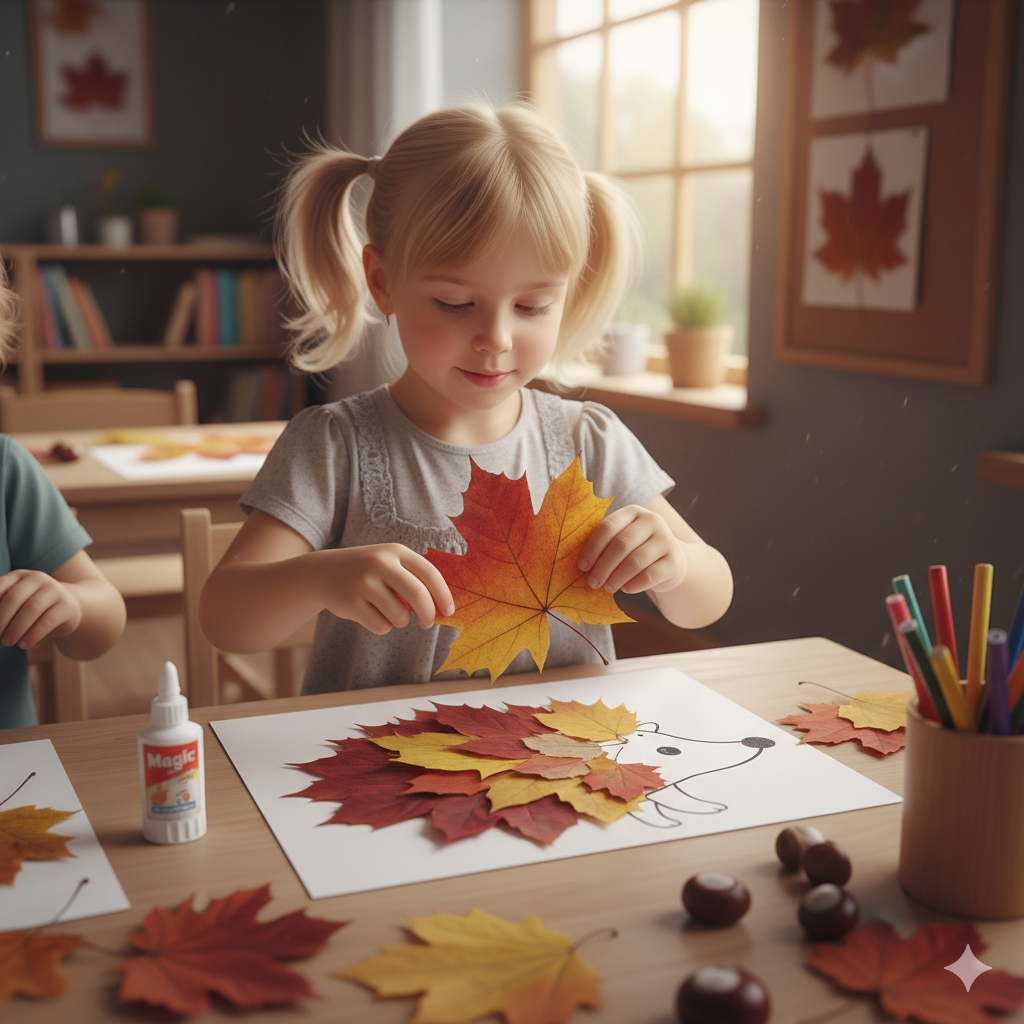 - Rozwój Małej Motoryki: Precyzyjne przyklejanie liści, wbijanie patyczków w kasztany czy ugniatanie ciastoliny to doskonały trening dłoni i palców, kluczowy do późniejszej nauki pisania.