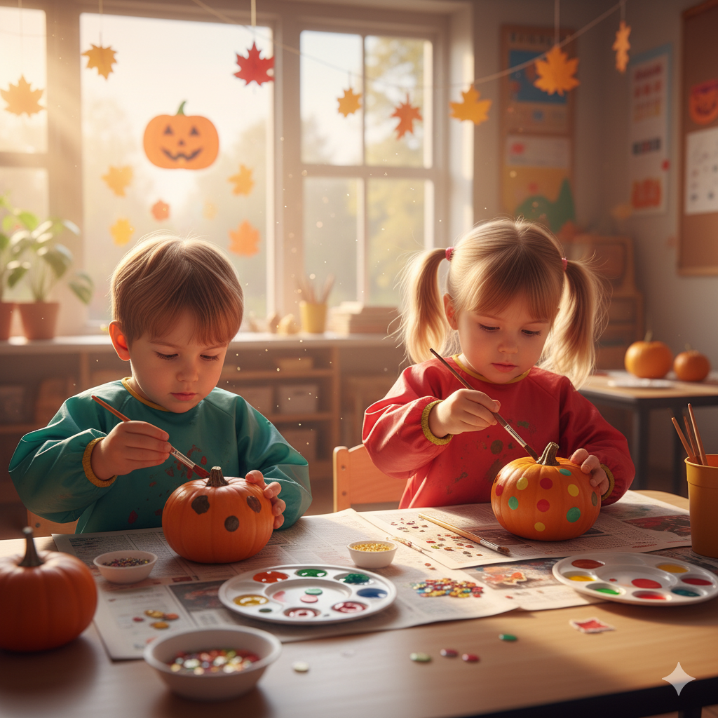 - Kreatywność i Odkrywanie Świata: Tworzenie leśnych ludzików czy malowanie dyni pozwala dziecku na swobodne wyrażanie siebie i zrozumienie cyklu życia w naturze.