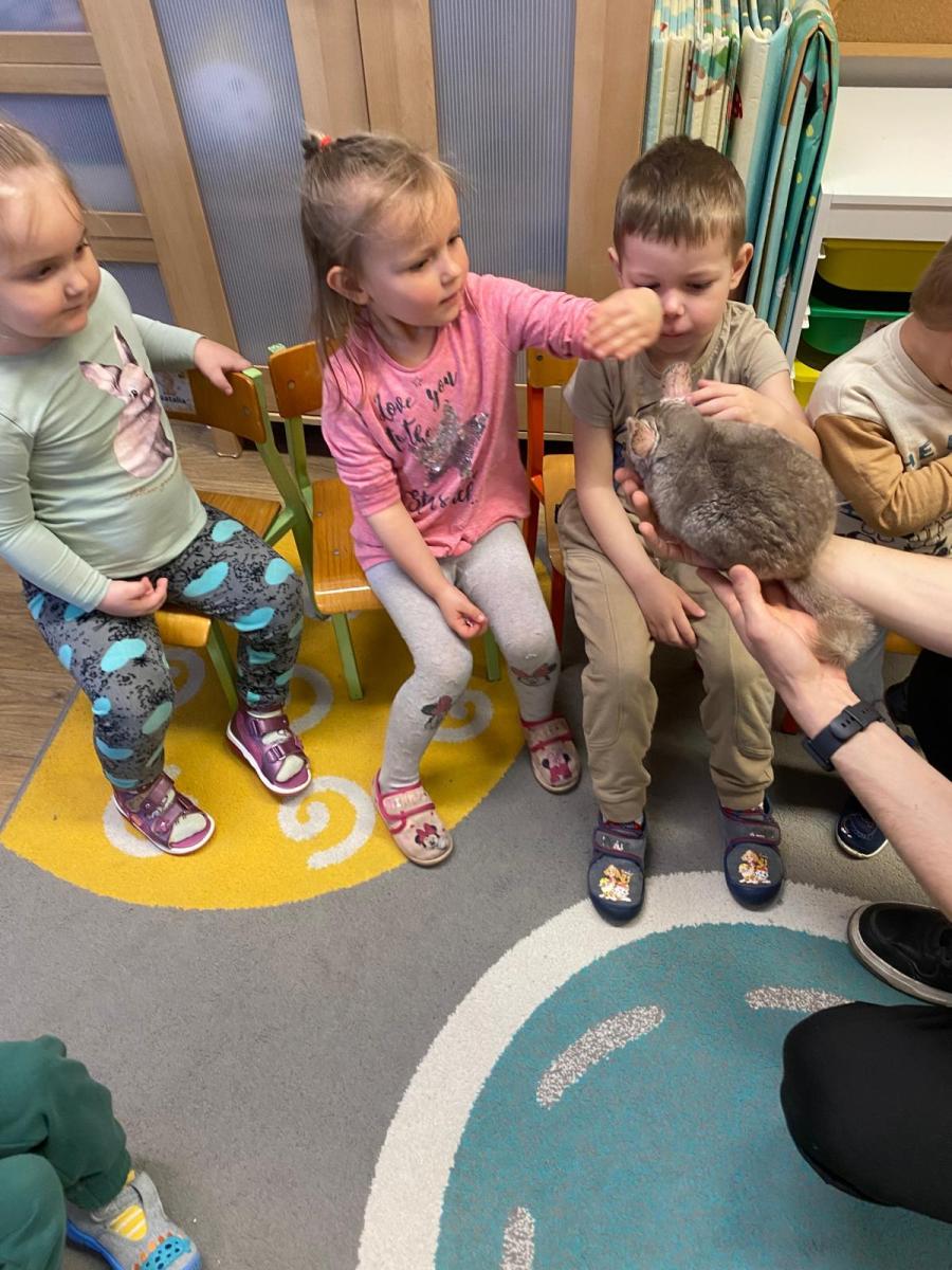 3.04 odbyła się 3 część zajęć w ramach Odlotowych pokazów. Tym razem w progach naszego przedszkola gościliśmy szynszylę i królika. Opiekunowie opowiedzieli o ich cechach charakterystycznych i zwyczajach, a same zwierzaki okazały się bardzo towarzyskie. Radość dzieci była nieopisana!