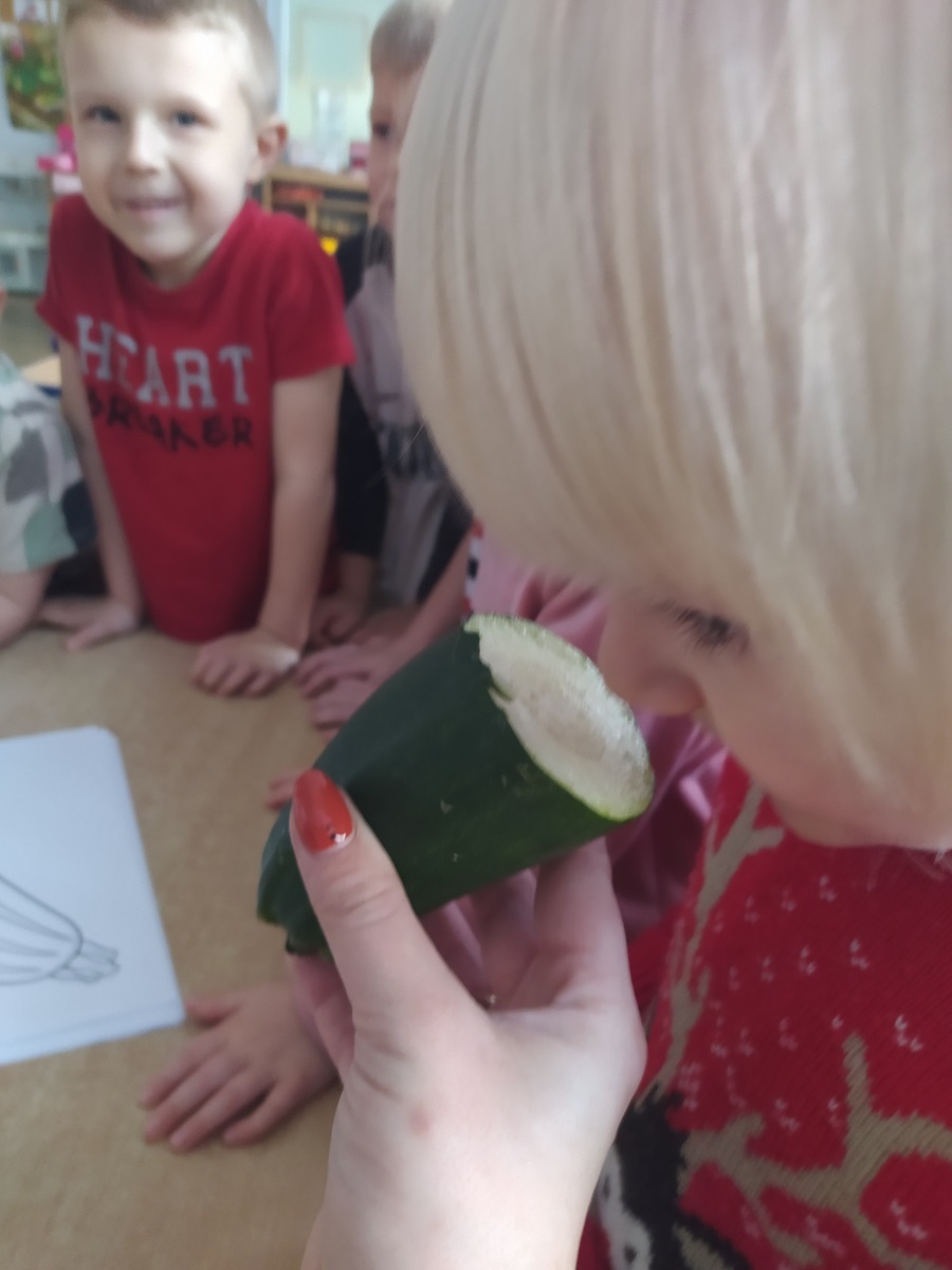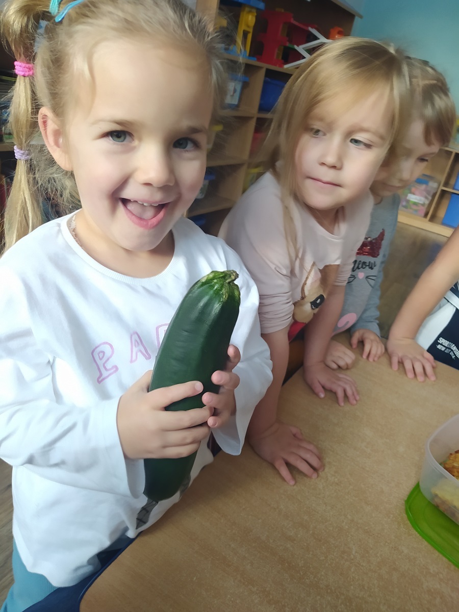 W tym miesiącu w ramach Ogólnopolskiego Programu Edukacyjnego Witaminki Tygryski poznały kolejne warzywo, jakim była cukinia. Dzieci smakowały, wąchały i poznawały co można z tego pysznego warzywa ugotować.