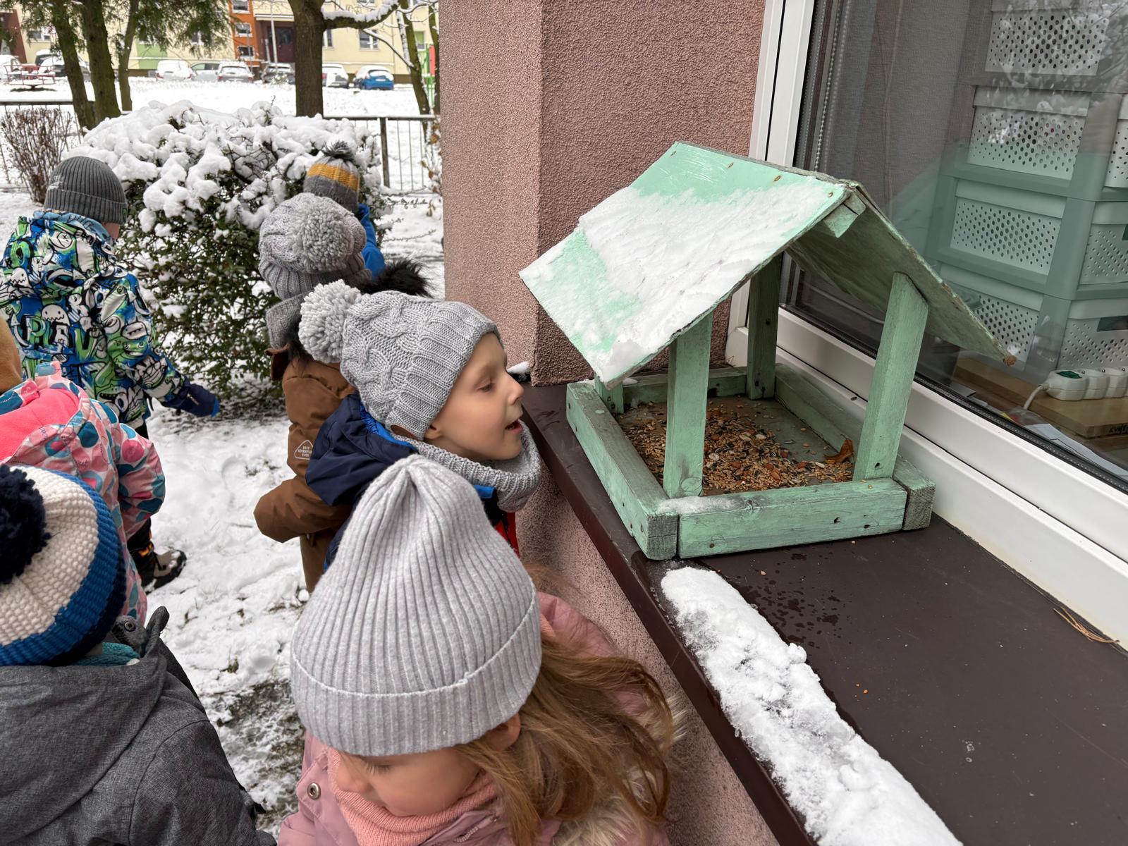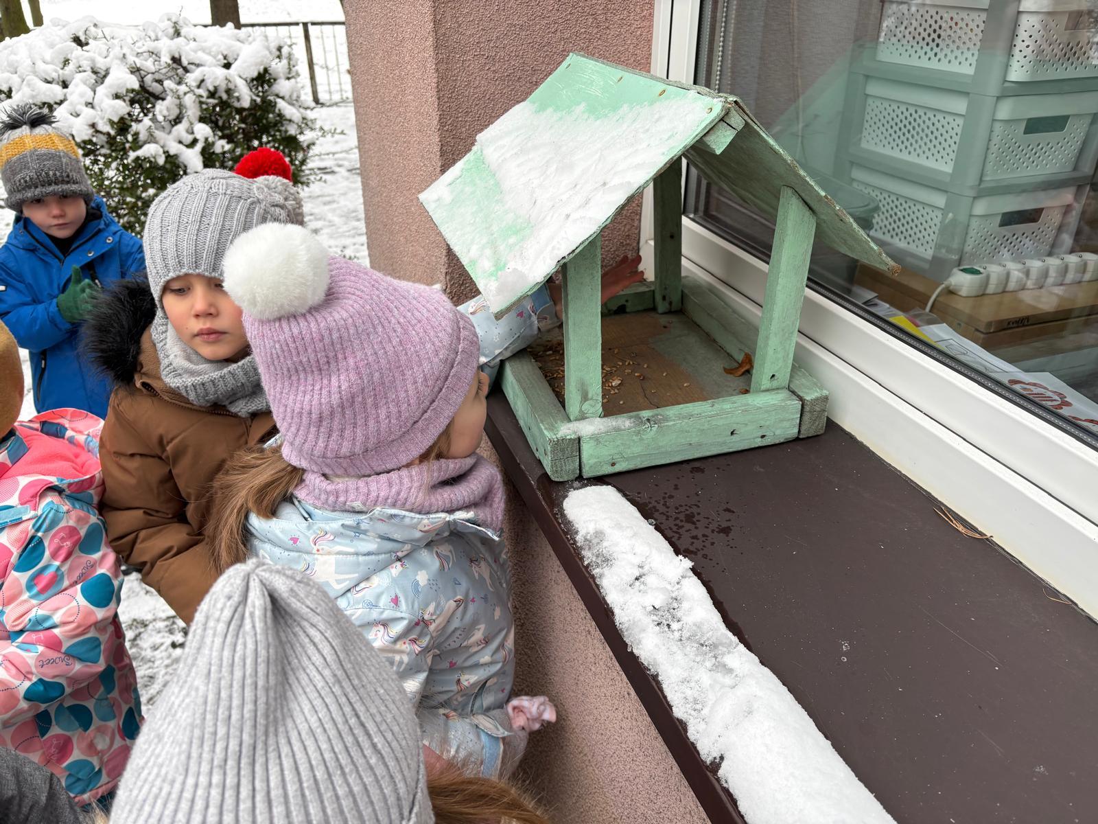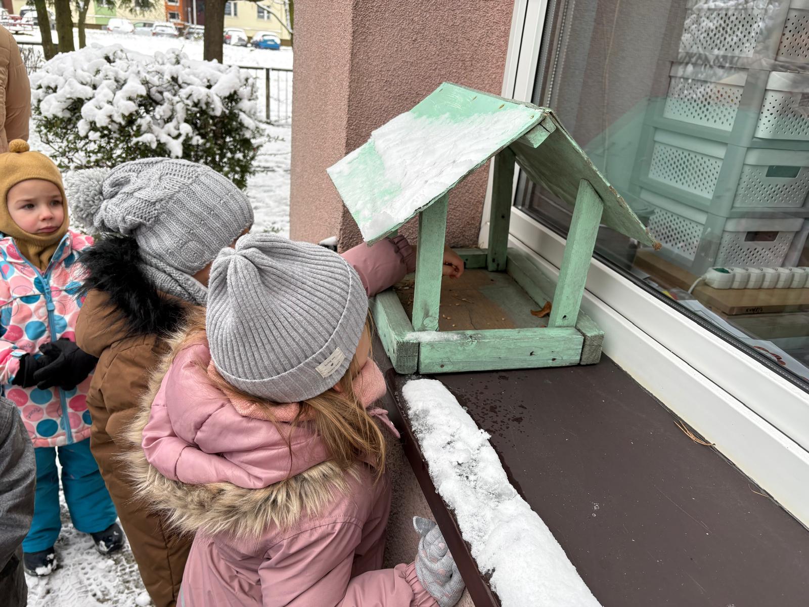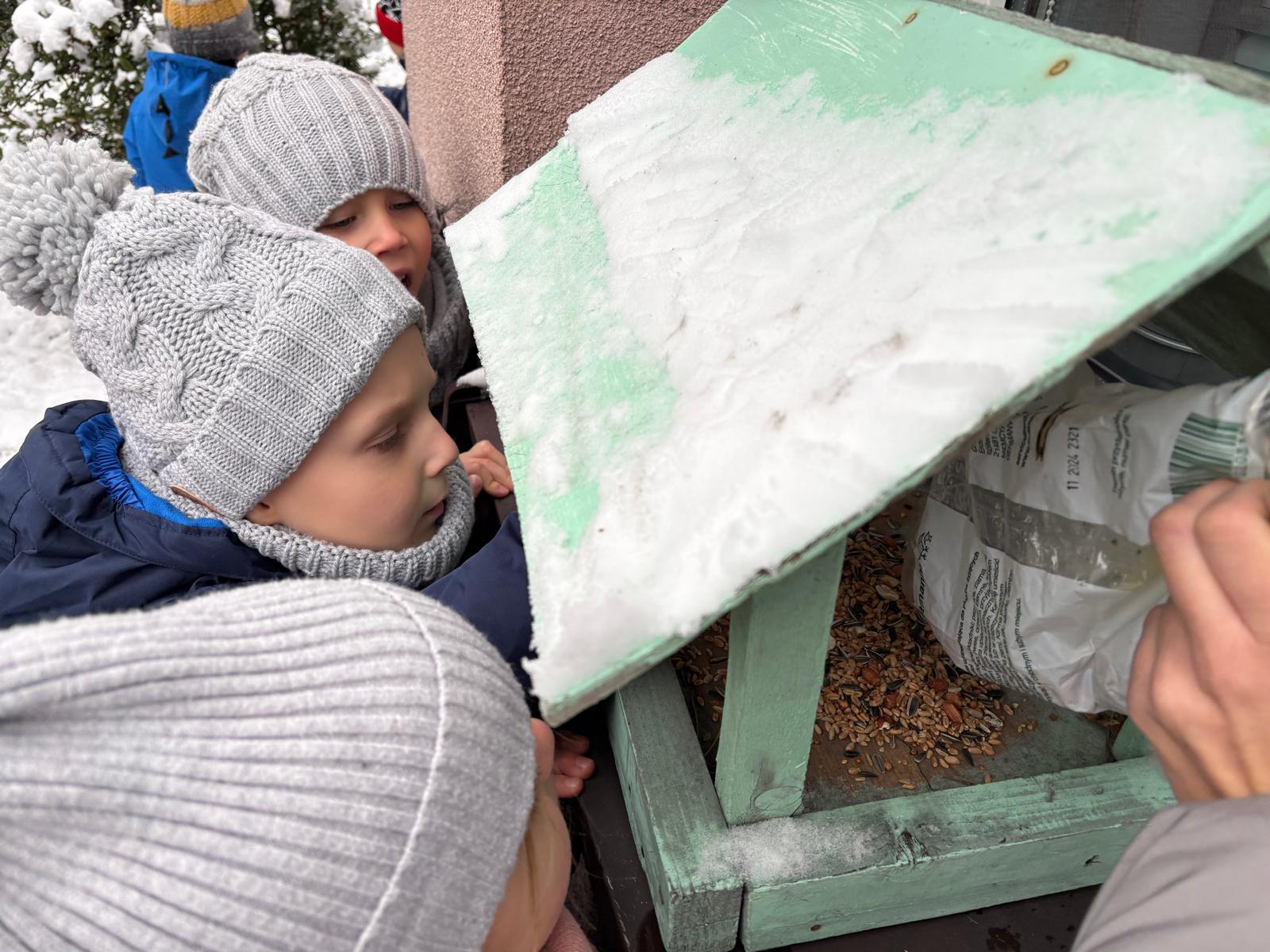 W poniedziałek grupa Misie wykorzystała piękną, zimową pogodę świetnie bawiąc się na przedszkolnym podwórku. Tygryski za to wybrały się na spacer do pobliskiego parku podziwiać piękne krajobrazy. Było dużo śmiechu, ruchu i radości na świeżym powietrzu! Nie zapomnieliśmy też o naszych małych skrzydlatych przyjaciołach i nasypaliśmy im, pierwsze tego roku, ziarenka do karmnika!