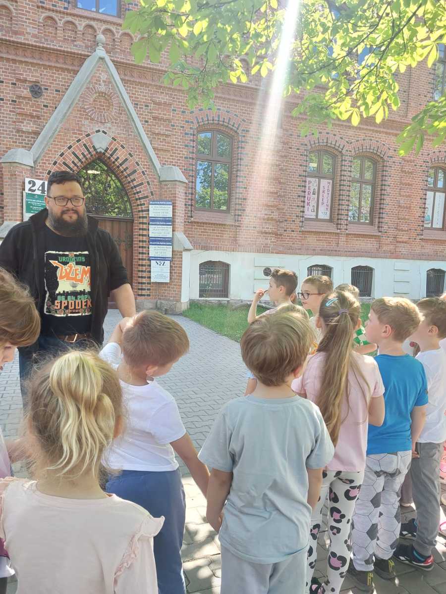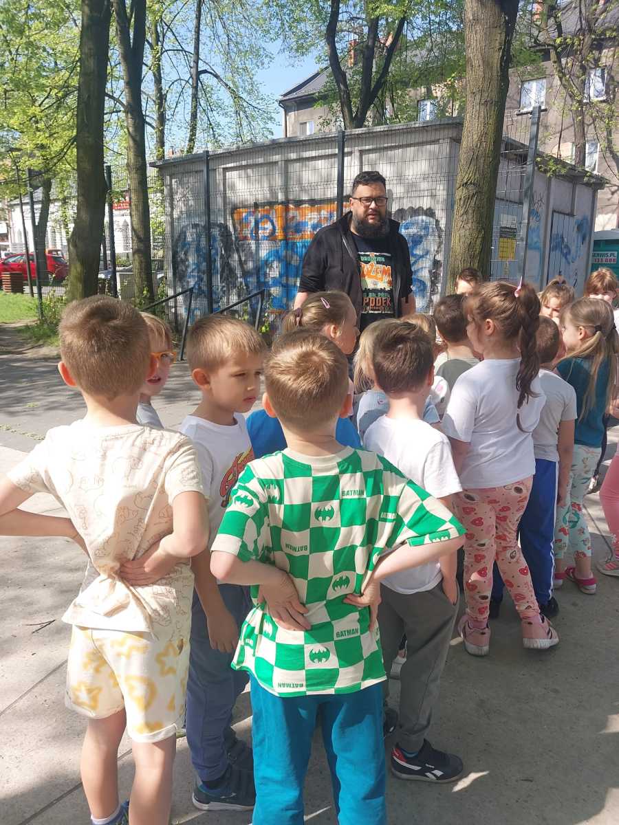 Słoneczka brały udział w zajęciach w terenie – spacerze historycznym po dzielnicy Godula. Oprowadzał ich historyk z Muzeum Miejskiego w Rudzie Śląskiej – pan Andrzej Godoj. Dzieci poznały wiele ciekawostek o miejscach i budynkach, które przetrwały do dziś.