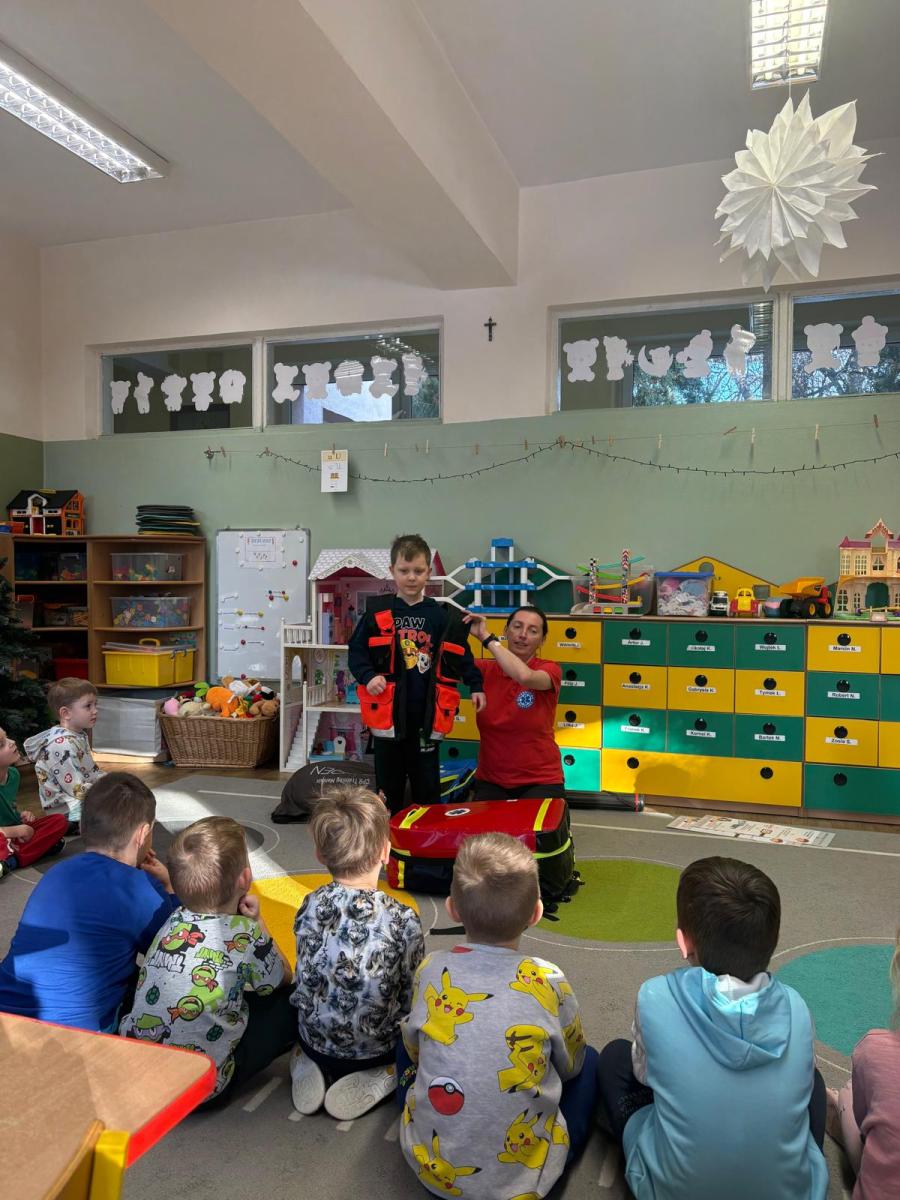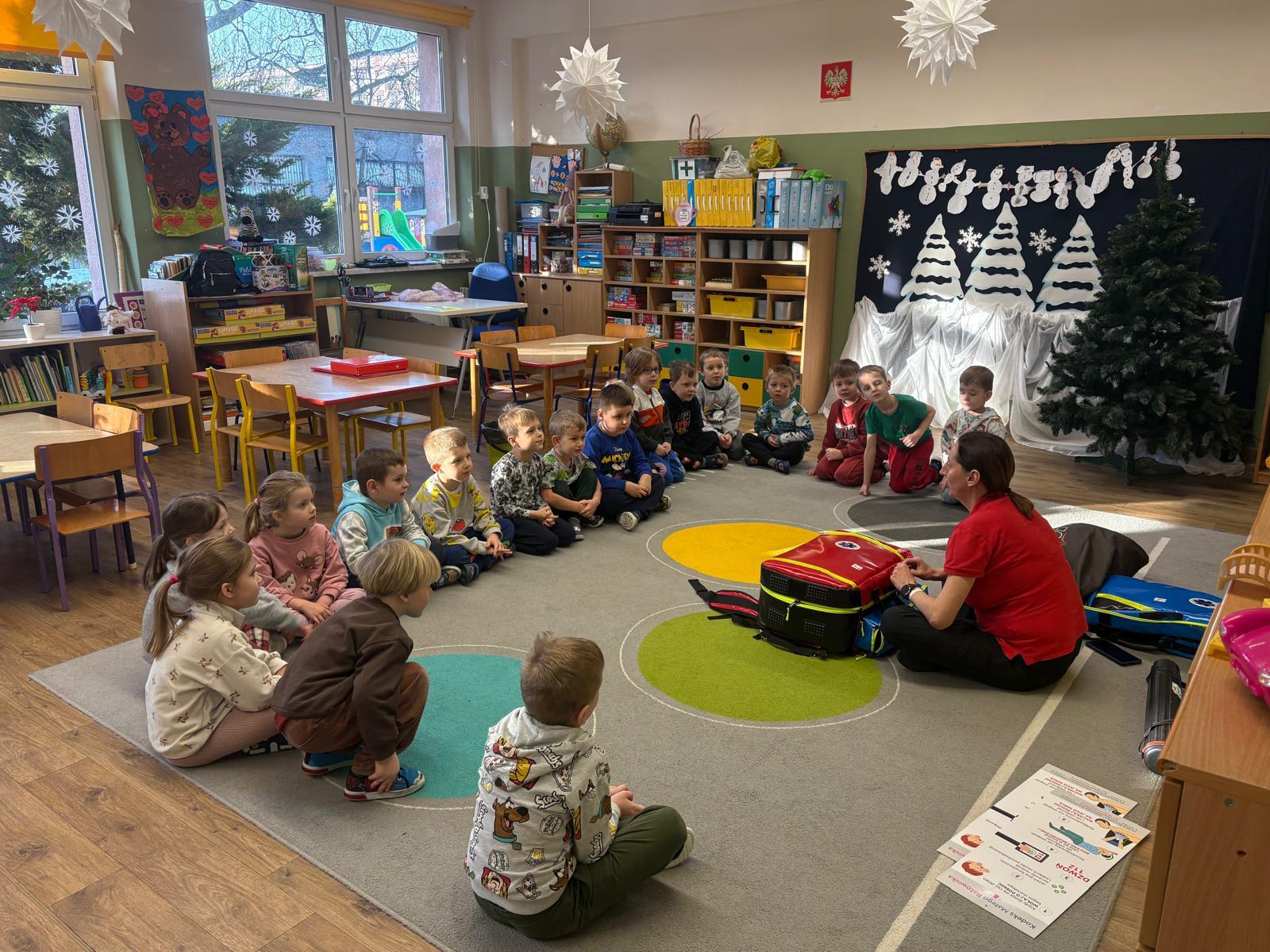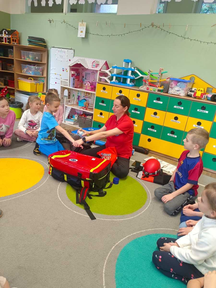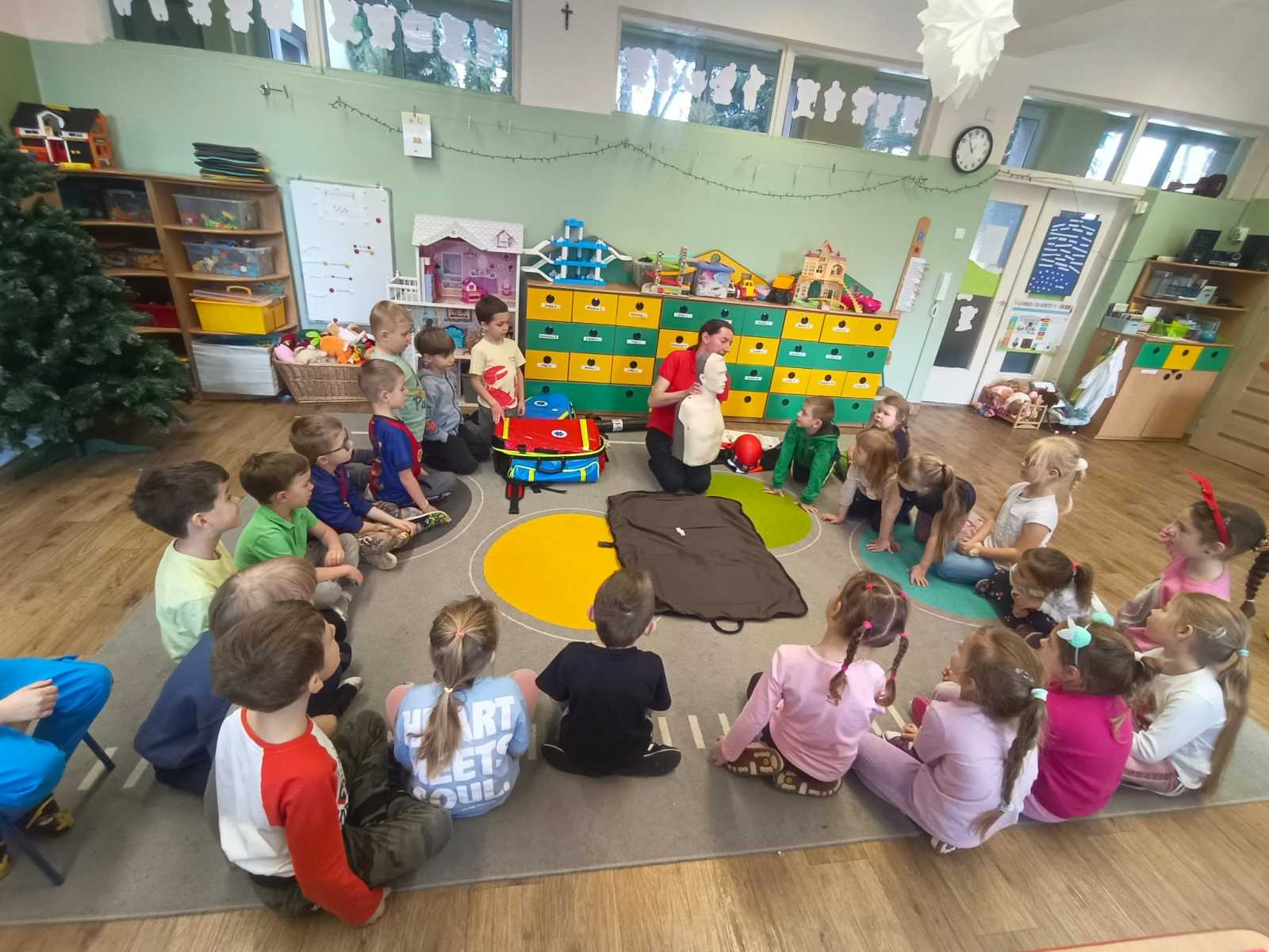 19.01 w ramach programu profilaktyczno-edukacyjnego Mali Ratownicy – ratujemy, bo umiemy! odbyły się w naszym przedszkolu warsztaty z pierwszej pomocy. Dzieci dowiedziały się, co może znajdować się w torbie ratownika medycznego, w jaki sposób udzielić pierwszej pomocy oraz poznały i utrwaliły numer alarmowy. To były bardzo wartościowe zajęcia!