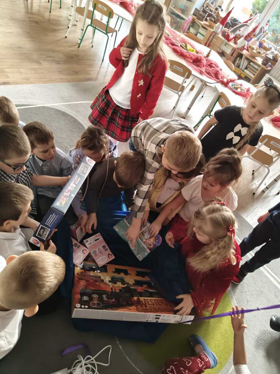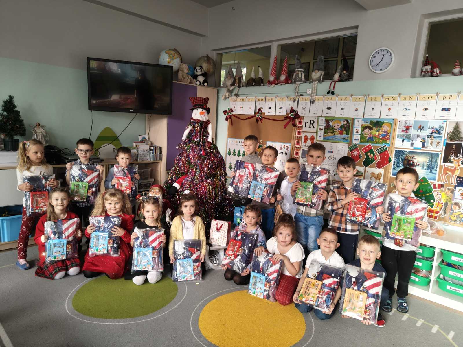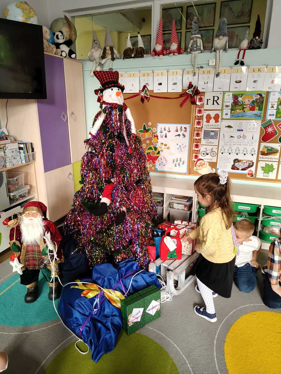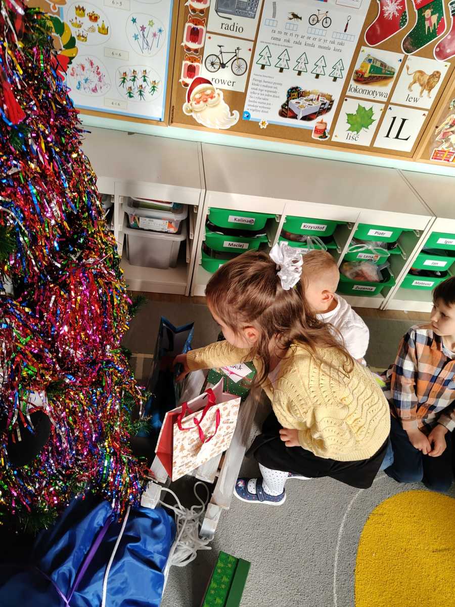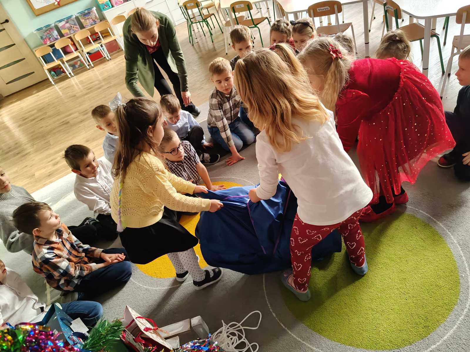 W piątek w naszym przedszkolu w każdej grupie odbył się świąteczny obiad wigilijny. Wszyscy złożyli sobie uroczyste życzenia, podzielili się opłatkiem, zasiedli przy wspólnym stole i odpakowali grupowe prezenty. Wesołych zabaw nie było końca, a dźwięki kolęd przeniosły wszystkich w iście świąteczny nastrój.