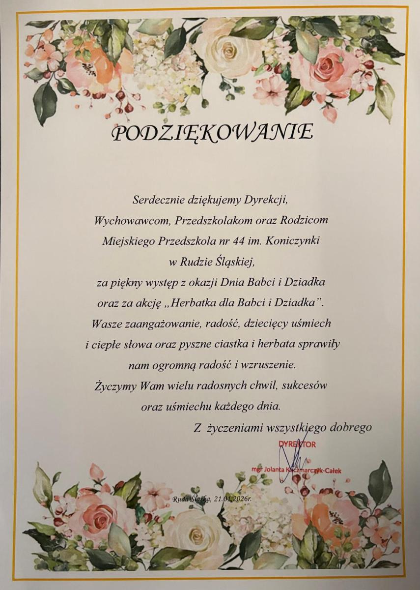 W dniu dzisiejszym grupa Tygrysków odwiedziła seniorów DPS Senior w Rudzie Śląskiej z krótkim przedstawieniem z okazji Dnia Babci i Dziadka ![]()