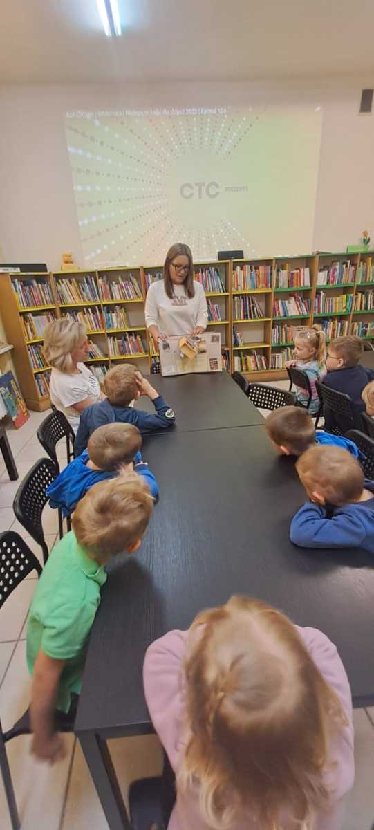 W piątek 09.05 Żabki wybrały się do Miejskiej Biblioteki Publicznej nr 13 na zajęcia czytelnicze. Oprócz wielu informacji o pracy bibliotekarki i funkcjonowaniu biblioteki nie zabrakło także słuchania bajek i wspólnej zabawy. To był bardzo ciekawy dzień!